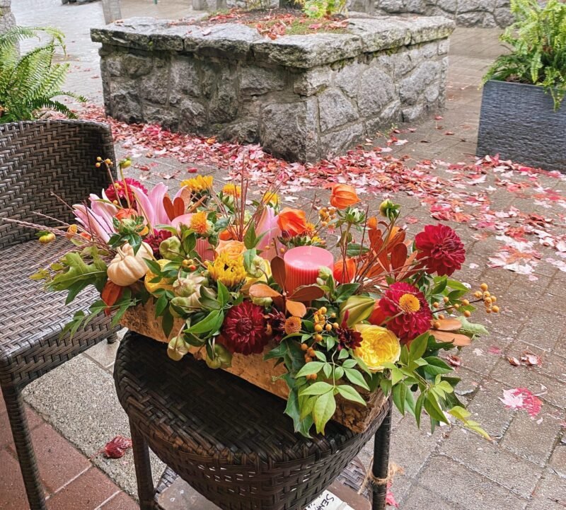 Budget | Small – Round Table Centerpiece 8" diam – $65, Medium Round Table Centerpiece 10" diam $85, Medium Long Table Centerpiece 12-14" – $75, Large Long Table Centerpiece 16 -18" – $100, Extra Large Long Table Centerpiece 22-25" – $150, Floral Pumpkin Large 8" diam, Small Lidded Floral Pumpkin 5" diam, Extravangant Custom Thanksgiving Centerpiece – $250 |